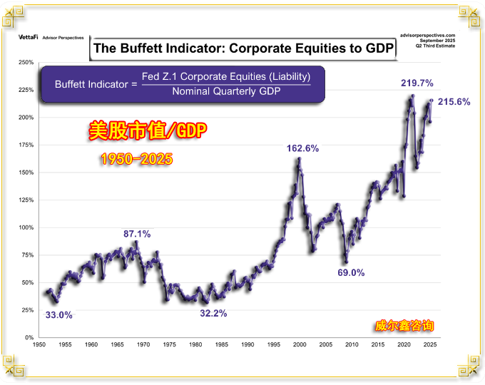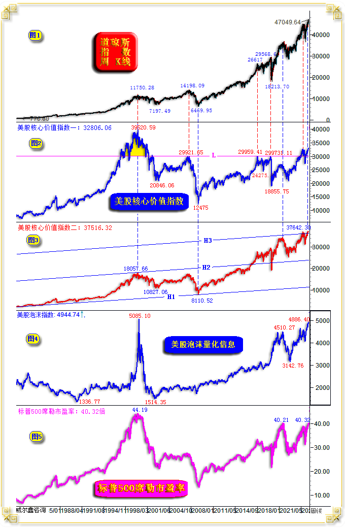 上周五美国三大股指在特朗普威胁重启对华加征100%关税的背景下大幅下跌。周末特朗普关于对华加征关税松口之后,美股周一大幅反弹。如何看待当前美股市场机会呢? 笔者对美股设计了几个关于其系统性机会与风险观察分析的量化指标,如道琼斯指数周K线信息图示: ![]() 小图2,乃笔者设计的美股核心价值指数之一,不难看出,最近30年,只要该价值指数触及L水平位置所示的30000点附近,就要警惕美股宏观或中周期见顶风险。2008年美股(道指14198.09点)大顶,2018年初的中期顶部(道指26617点附近),2020年一月的中期顶部(道指29568.6点),美股核心价值指数对顶部的量度都非常准。 但是,2000年道指在科网股泡沫带领下见顶11750.28点前后,持续位于30000点上方,意味着泡沫延续了很长一段时间。当时,标普500席勒市盈率最高达到了44.19倍,如小图5信息所示。目前,AI概念似乎类似2000年科网概念让美股泡沫持续超预期发酵,小图2所示的美股核心价值指数再次与2000年前后相似,突破了30000点。但这不改笔者关于美股大周期泡沫盛极的定性。 小图3,乃笔者从另一市场分析观察维度设计的核心价值指数,相较于小图2的绝对量化定义,多了尊重趋势的灵活性,相对趋势更平滑。但是,图中两组对美股核心价值量度的通道信息值得高度关注。在2017年前的40多年H1H2价值通道中,指数靠近H1趋势线构成战略做多美股的机会,指数靠近H2轨道线时注意美股宏观见顶风险。 2016年一季度,市场曾担心一轮堪比2008年的金融危机到来,尤以索罗斯的吟唱影响最有力。但笔者却断言美股在未来两年会迭创历史新高,道指将运行至22000点以上。2017年一季度,美股核心价值指数有效突破了H2轨道线。此后,H2转换技术角色成为新通道趋势线,轨道线H3在H2线上方,等比宽度于H1H2通道。2020年美股因疫情冲击暴跌测试H2趋势线支撑,支撑有效,笔者亦及时准确地预测到了道指将在18000点附近见底,并及时发文对观点予以分享。随后一年多,美股强势上行,令核心价值指数靠近H3轨道线附近,再次遇阻后大幅调整。最近两年,该指数屡屡冲击、突破H3轨道线,我认为美股系统性见顶风险极大。回顾2017年前,美股核心价值指数在H1H2通道中运行了40多年。2017年后至今仅约8年,美股核心价值指数就能有效突破H2H3价值通道吗?显然不可能! 小图4,笔者设计的美股泡沫指数。2020年至今,美股泡沫持续能力确实比2000年“更坚韧”,以至于美国银行、高盛和CFRA Research等华尔街机构策略师们一致认为泡沫延续将成美股“新常态”!但我不认同这个观点,美股泡沫不是不“爆”,只是时候未到!人性的恐惧与贪婪,才是亘古不变的常态! 小图5信息所示,上周标普500席勒市盈率最高达到了40.32倍,刷新了2021年大周期估值高点: ![]() 距离2000年创下的44.19倍140年绝对“疯巅”估值,也近在咫尺。若参考巴菲特之美股市值与美国GDP比值估值观察,美股估值早已刷新140年新高: ![]() 周五美股大幅下跌,也许是中周期下跌的序幕,特朗普的反复无常不可能影响市场真实趋势。周一美股大幅的反弹,也许就是只是反弹而已! |